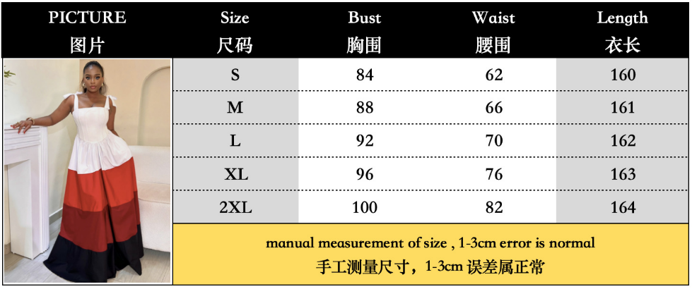 | Product Name | Bow-Tie Straps Color-Blocked Maxi Dress GANY-LB888 |