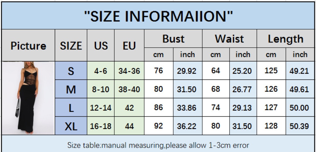 | Product Name | Solid Color Mesh Sling Maxi Dress GWLS-LD202508 |